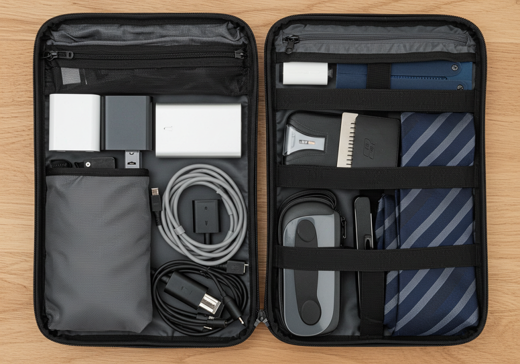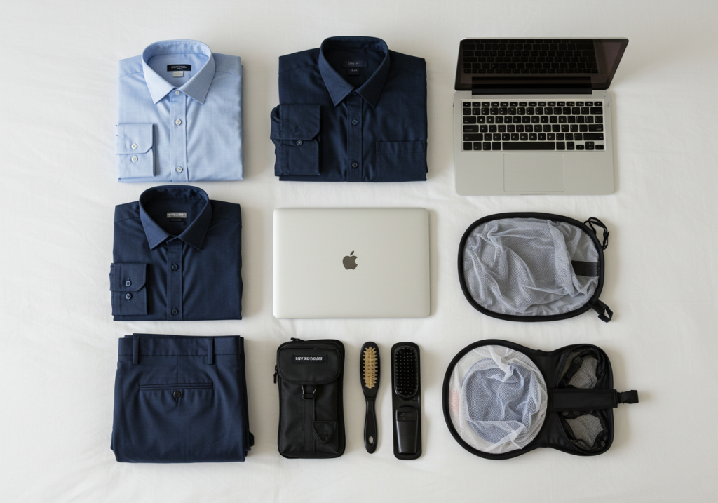 まずは、1週間の長期出張を乗り切るための「必須の持ち物」から確認していきましょう。男性の出張は、機能性と効率性が鍵。