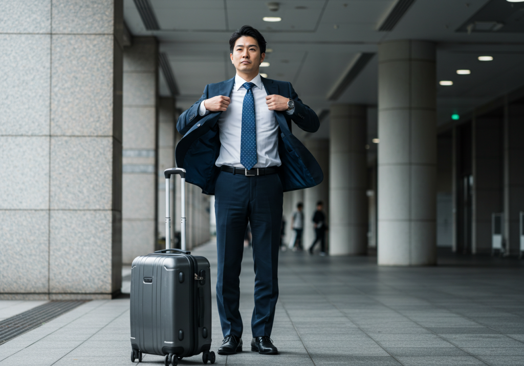 1週間の長期出張で、多くの男性が頭を悩ませるのが「スーツ問題」です。7日間同じスーツではシワや汚れが心配。かといって何着も持っていくのは現実的ではありません。