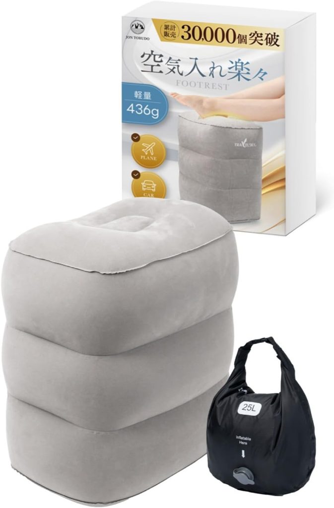 床に置いて使用する、空気で膨らませるタイプのフットレストも人気です。