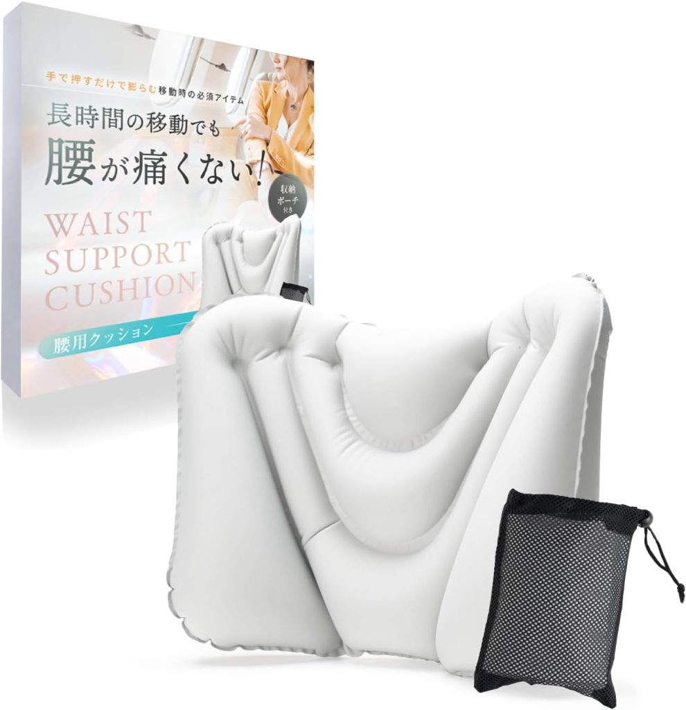 「腰痛」のある方にとっては、新幹線移動の数時間でも大いに不安です。そんな方にお勧めなのが、「腰まくら・腰痛クッション」です。空気で膨らませて使うので、鞄の中で邪魔になりません。これがあるのと無いのとでは腰への負担が全く違ってきます。大人気商品です。