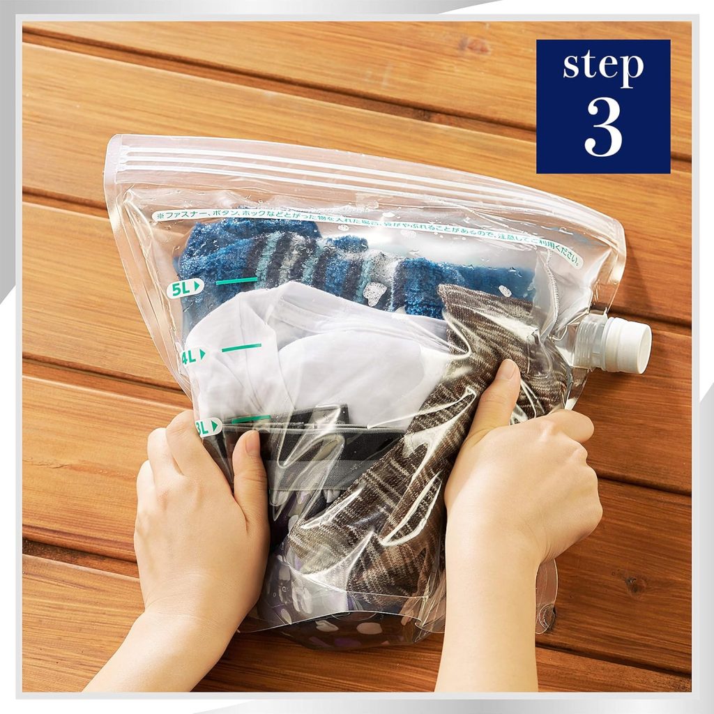 衣類を驚くほどコンパクトに収納できる圧縮袋は、スーツケースのスペースを確保するための必須アイテム。