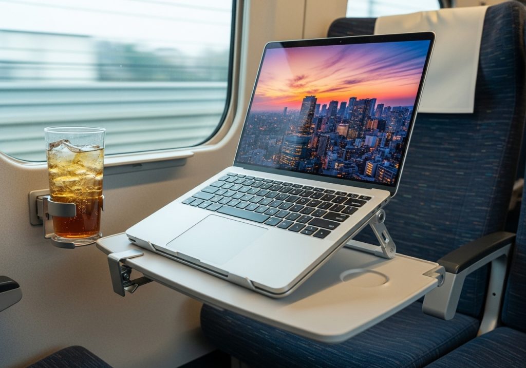 - 新幹線ではPCスタンドや固定式ドリンクホルダーが作業効率を上げる