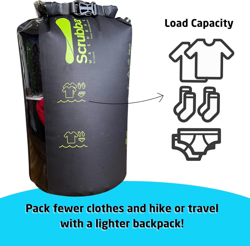 そんな時、水と洗剤を入れて揉み洗いできる携帯用の洗濯バッグ(スクラバウォッシュなど)があると、バスタブがなくても下着や靴下、Tシャツなど少量の洗濯が驚くほど簡単にできます。