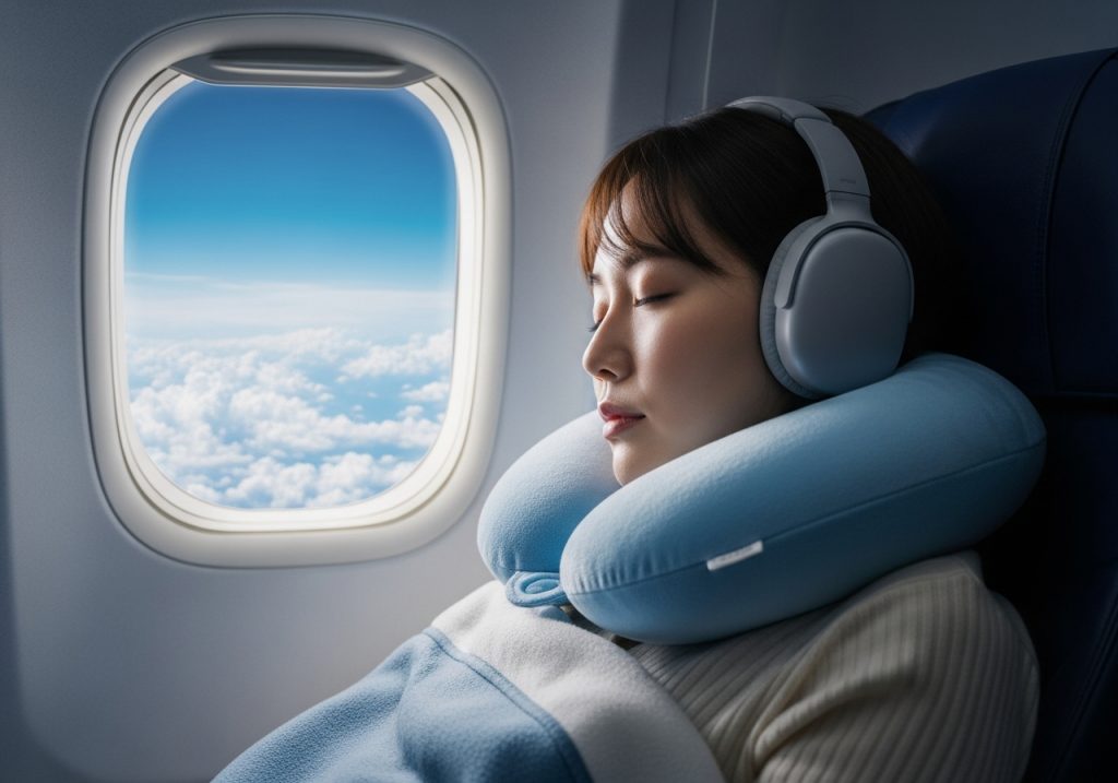 特に「ネックピロー」と「ノイズキャンセリングイヤホン(ヘッドフォン)」は必須アイテムです。また、腰痛餅の方は「腰まくら」は外せません。