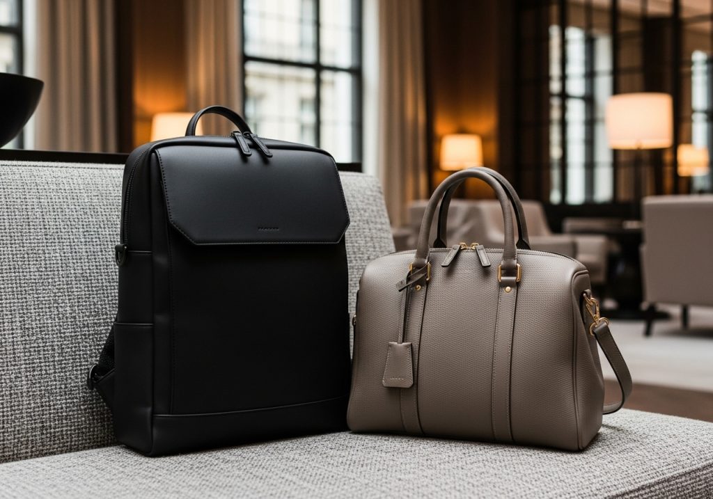 女性の出張バッグは、ビジネスツールとしての機能性は当然のこと、スーツやオフィスカジュアルといった服装に合う上品さや、全体のコーディネートを格上げするようなデザイン性も求められます。