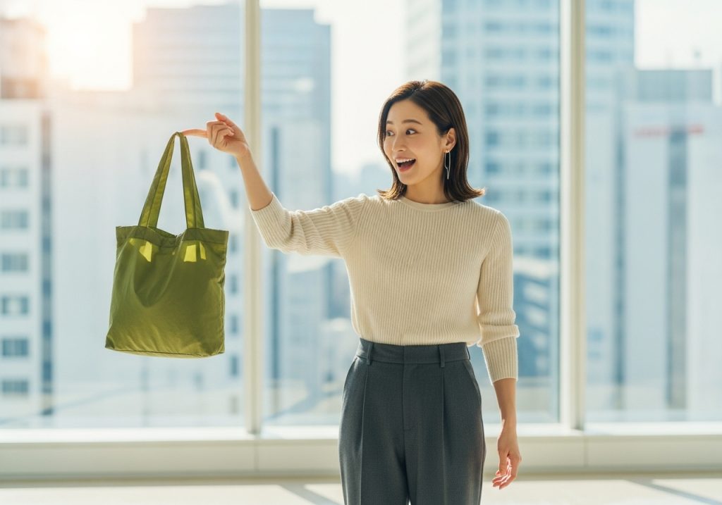 機能面では、まずA4ファイルや13インチ程度のノートPCがすっきり収まるサイズ感は必須です。その上で、バッグが自立するタイプだと、商談中などに床に置いた際の所作が美しく見え、好印象を与えます。また、持ち手が長めで、冬場の厚手のコートの上からでも楽に肩掛けできるかどうかも、実際に使ってみると快適さを大きく左右する重要なチェックポイントです。